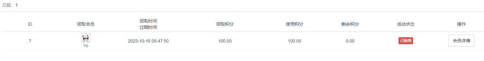 【1】购买未参与积分活动奖励的商品。 商品并未开启参与积分活动奖励,会员下单抵扣,订单也完成收货,积分实则被用掉了,但积分活动管理活动状态依旧显示已领取,不会显示已使用,等一旦过了积分使用有效期才会变为已过期。